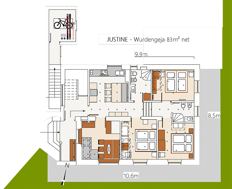 1 living room, 2 luxury bathrooms, 83 m²